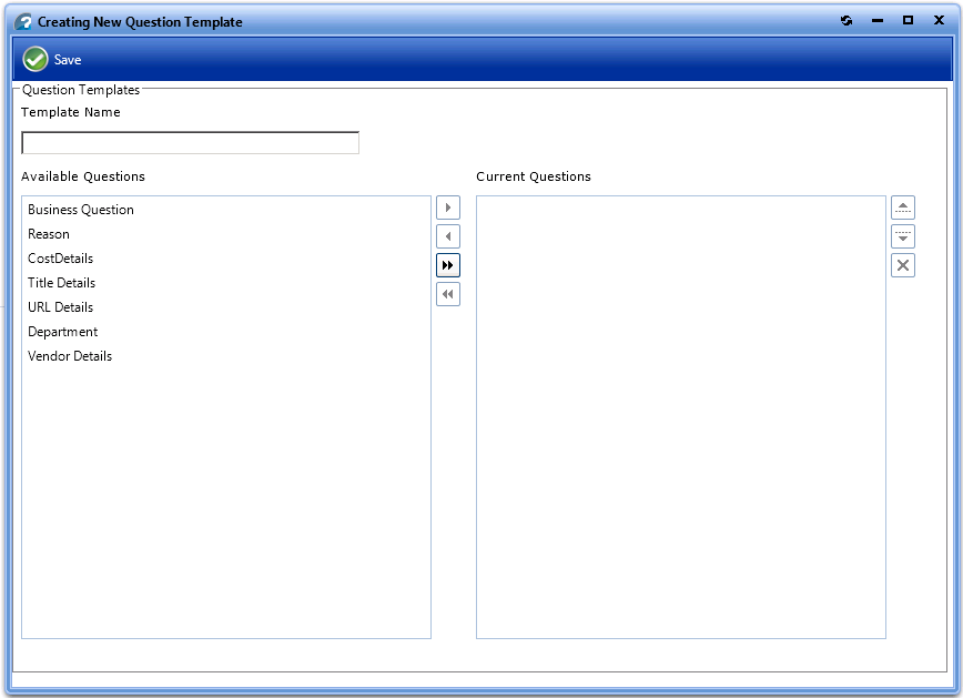 In the Available Questions list, select Reason and click the right arrow button to move it to the Current Questions list.