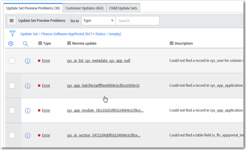 Click Preview Update Set. After previewing the update set, if there are any errors, they will be listed at the bottom of the screen on the Update Set Preview Problems tab.