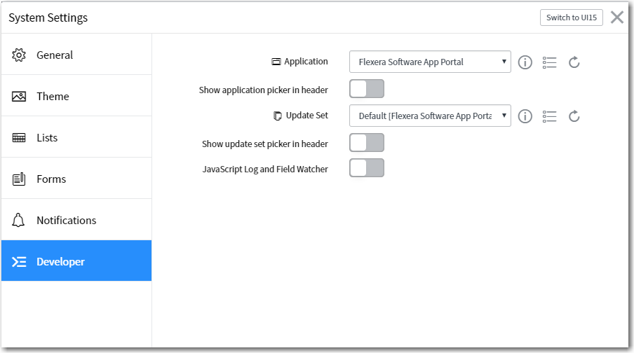 Change the value of the Application field from Global to Flexera Software App Portal and close the view.
