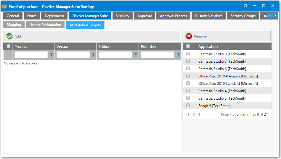 3. Open the FlexNet Manager Suite > Alert Action Targets tab.